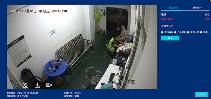 手機(jī)檢測(cè):AI行為分析邊緣計(jì)算盒子對(duì)圖片中使用手機(jī)的行為做檢測(cè)分析,并告警上報(bào),如圖是在車間辦公室違規(guī)使用手機(jī)的行為;