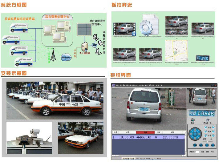 整套系統(tǒng)主要由車載移動(dòng)取證終端和后臺(tái)數(shù)據(jù)處理中心兩大部分組成,可配合接入無(wú)線網(wǎng)絡(luò)實(shí)現(xiàn)遠(yuǎn)程監(jiān)控: